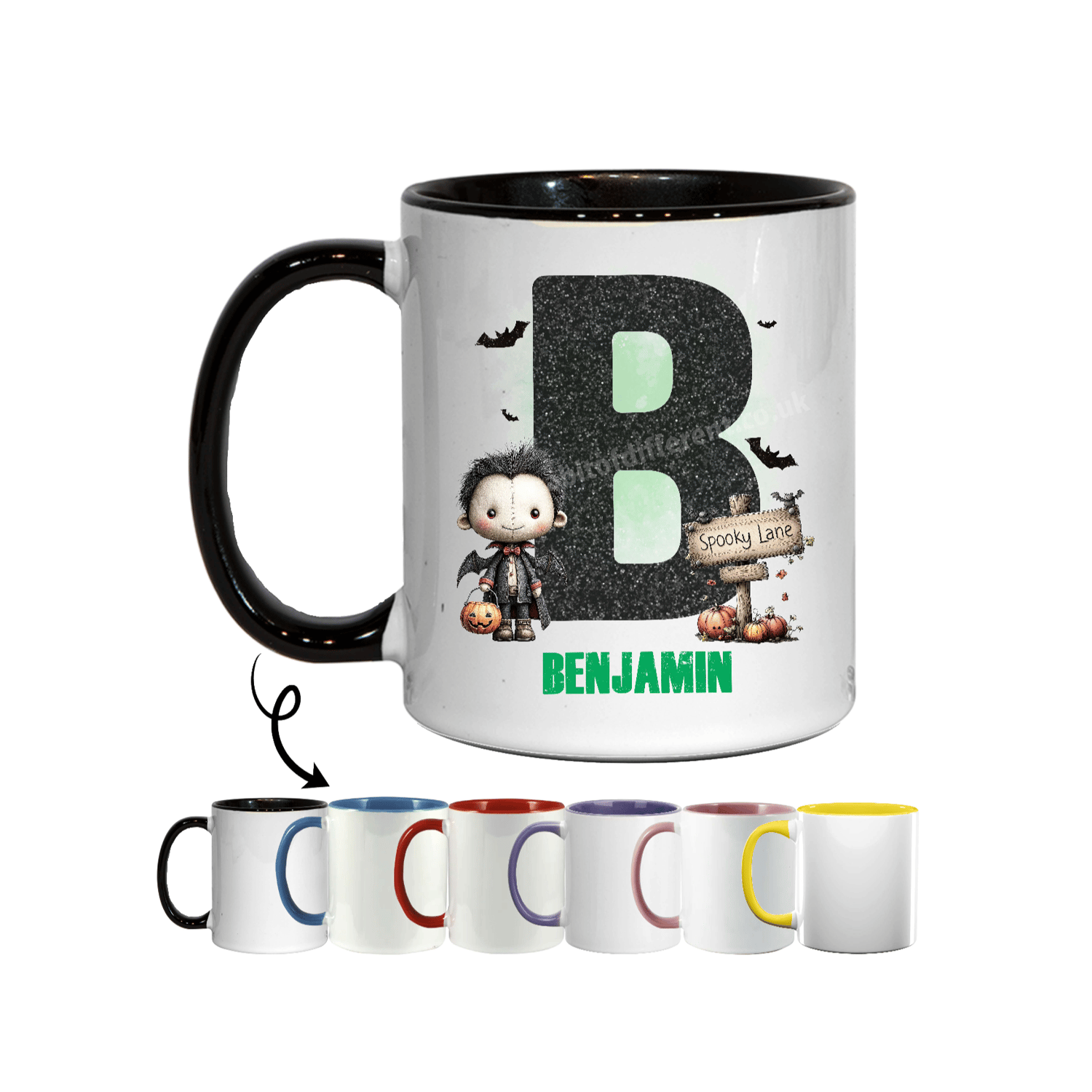 Halloween Personalised Mug, Dracula Initial ceramic 11oz cup
