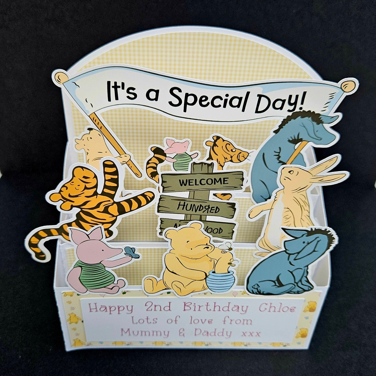 Winnie the Pooh Personalised card , unique pop up card , Birthday, Christening
