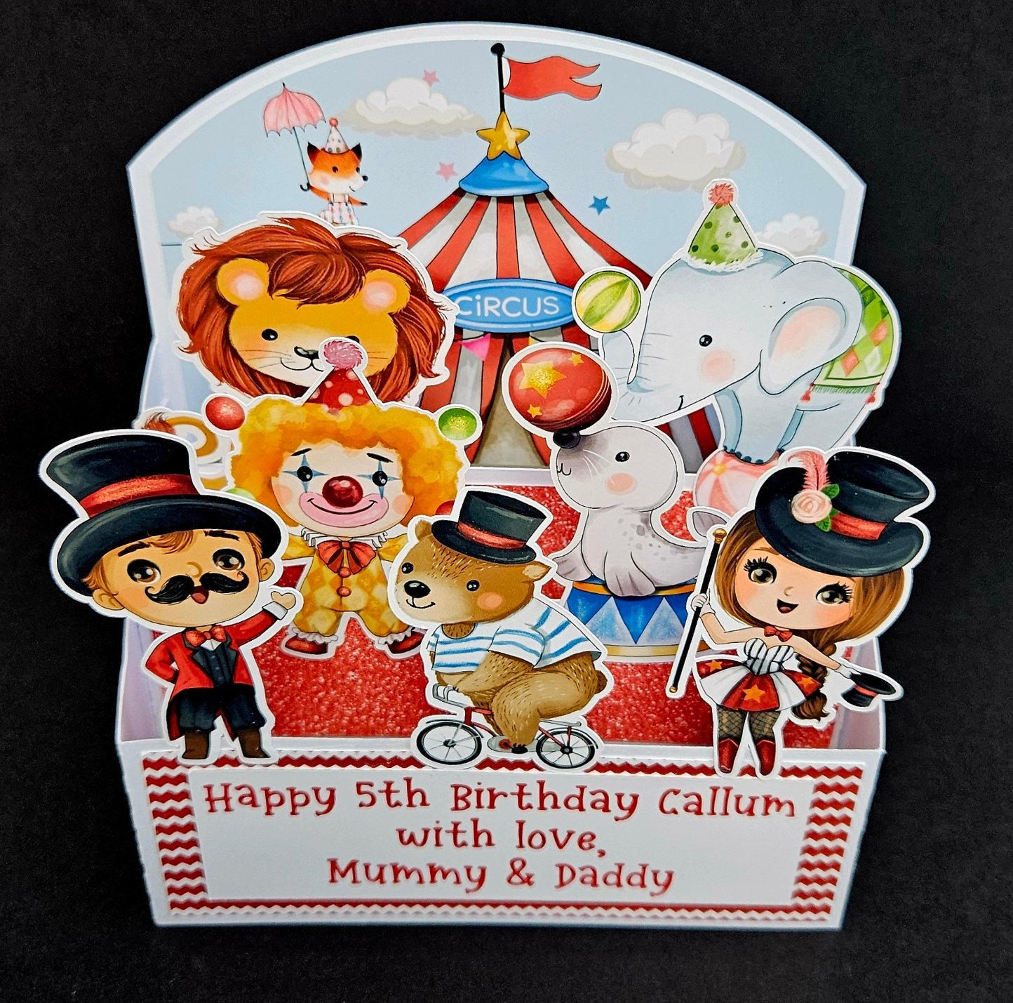 Personalised Circus Card 3D Birthday box card gift for her him Any occasion
