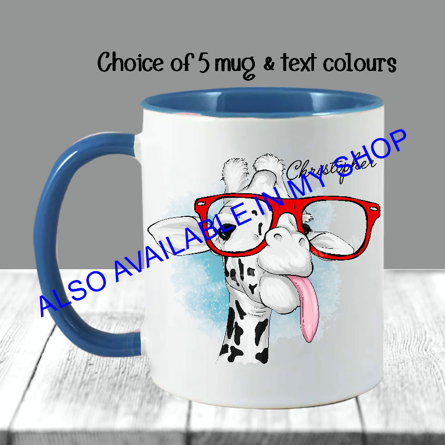 Personalised Giraffe Mug, gift cup, monogram gift, 'optional' Coaster , free gift box , initial name