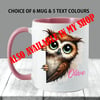 Personalised Owl Mug custom name ceramic cup birthday gift for her him quirky optional Coaster